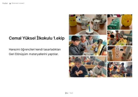 Observant Leopard Cemal Yüksel qlkokulu 1.ekip Harezm i öğrencileri kendi tasarladıkları Geri Dönüşüm m ateryallerini yaptılar. 2 » / 1»0